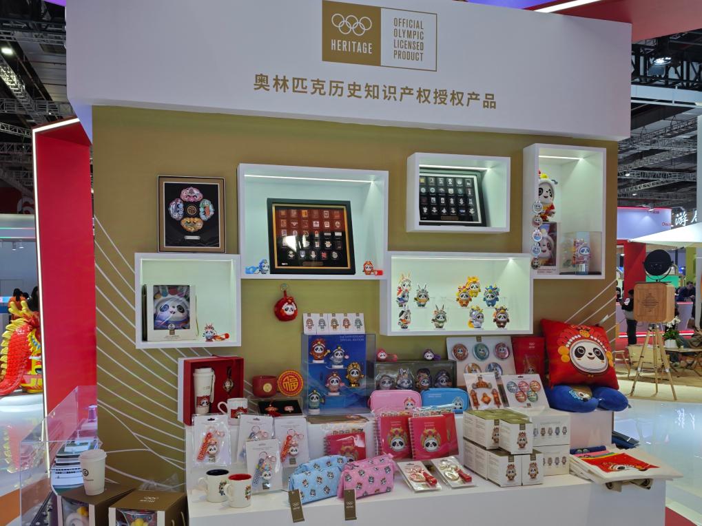中国旅游集团展台展示的“冰墩墩”系列产品。新华社记者 徐壮 摄